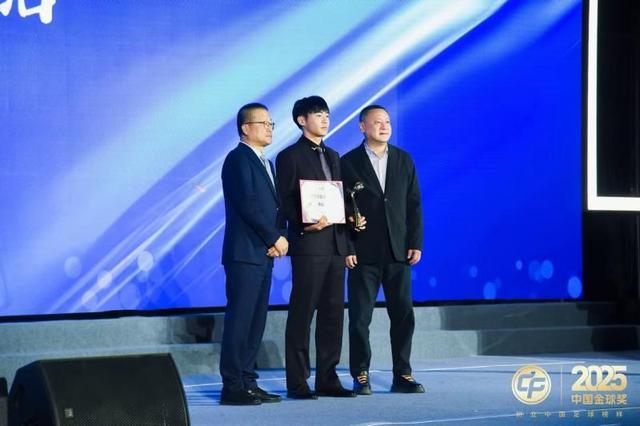 中国金童奖U17组别的竞争更显激烈,邝兆镭、帅惟浩和魏祥鑫均获得了20张以上的第一名选票。最终,帅惟浩更胜一筹,以微弱优势力压决意去欧洲闯荡的魏祥鑫。四川足球名宿马明宇来到现场,为“成都娃”帅惟浩颁发了奖杯。